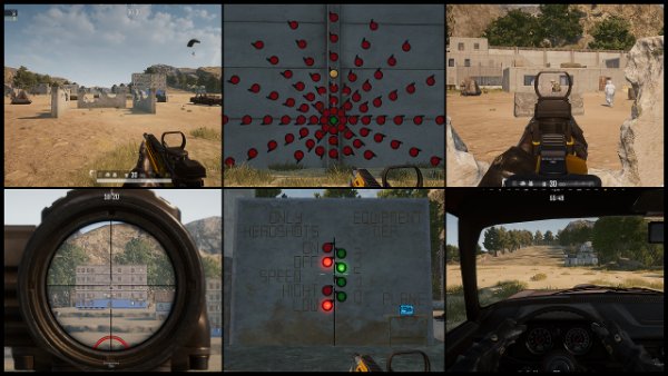 Самая полная тренировочная карта для PUBG UGC Alpha. Включает все ключевые механики — от flickshot до практики парашюта. Боты респавнятся мгновенно в случайных точках в пределах своих локаций.
